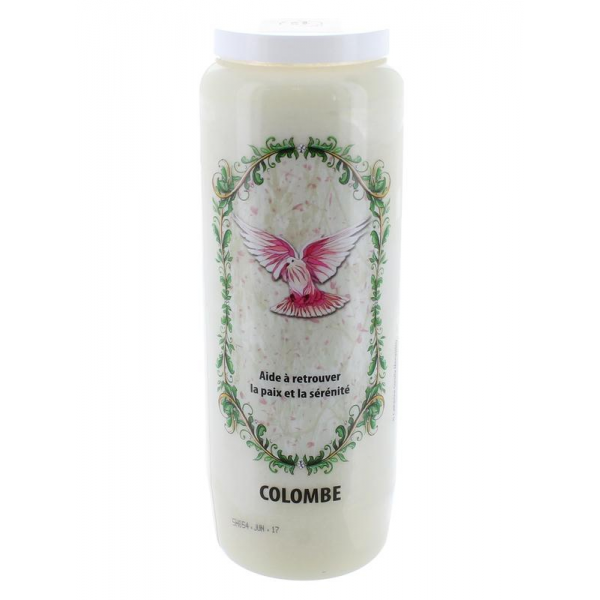Aide à retrouver la paix et la sérénité. Colombe, Que ta lumière descende sur moi. Apaise mon esprit. Enveloppe mon corps de douceur. Purifie mon Être tout entier. J'appelle sur ma vie maintenant. Ton énergie bienveillante. Ta flamme sacrée. Qui guérit les corps subtils. Et protège en douceur. Tes plumes blanches. Comme une caresse. Me rappelle qu'il est temps. Que je fasse la paix. Que je pardonne et me réconcilie. Avec les autres. Et moi-même. Par ton intermédiaire. Mon âme communique avec les autres âmes. Et restaure l'harmonie. J'accède à une plus haute spiritualité. Je ressens une profonde. Sérénité. Moi, enfant de Ciel Père et de Terre Mère, je te remercie, Colombe, de calmer mon agitation et d'apaiser tout ce qui a besoin de l'être, sur ce chemin de sagesse. Grâce à toi et avec toi, Je Grandis Durée de combustion 9 jours/ 9 nuits